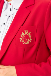 Прекрасный, стильный, яркий женский жакет не оставит равнодушной ни одну модницу! Полуприлегающий классический покрой подчеркнет достоинства фигуры, он идеально подойдет для создания разнообразных нарядов на каждый день благодаря универсальности и стильному дизайну. Жакет с застёжкой спереди на петли и пуговицы, с пиджачным воротником и втачными двухшовными рукавами. По переду выполнены боковые прорезные карманы с клапанами и нагрудный накладной карман с дизайнерской фирменной вышивкой, спинка со швами.