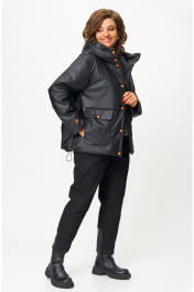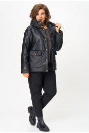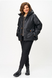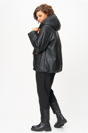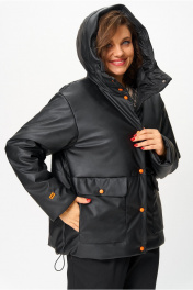 Куртка утеплённая женская прямого силуэта, выполнена из экокожи, стёганной с утеплителем. Изделие со спущенным плечом, с втачным одношовным рукавом, с капюшоном, с центральной застёжкой на кнопки контрастного цвета. Перед с накладными карманами с клапанами, низ изделия фигурный, по низу спинки и капюшону регулируемая стяжка. Утеплитель Hoopon 150гр/м2, рекомендуется для эксплуатации при температуре +5 / -10 градусов (стоит учитывать индивидуальную восприимчивость к холоду).