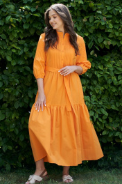 Оранжевое макси-платье с воланом и съемным поясом Andina city 8011 оранжевый