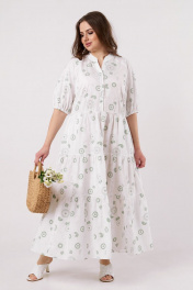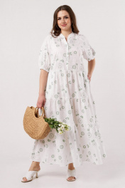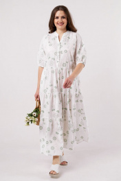Платье прямое летнее из хлопка с воланами и карманами Andina city 806-2 белый_круги