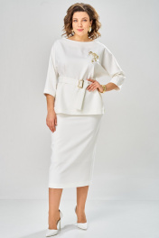 Костюм женский двухпредметный. Блузка прямого кроя со съёмным поясом, это стильно и удобно. Спокойная и женственная, она станет акцентом вашего гардероба. Свободный крой и рукава длины ¾ создают утонченный силуэт, который подчеркнет вашу фигуру. Дизайн блузки сочетает в себе классическую элегантность и модные тренды. Нежная дизайнерская вышивка добавляет образу легкости и изящества. Юбка-карандаш женская классического кроя, длиной миди. Юбка на притачном поясе частично с эластичной тесьмой, застёжка сзади на тесьму-молнию. Изделие на подкладке.