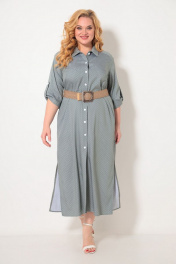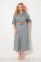 Платье - рубашка из легкого, струящегося, натурального полотна в мелкий горошек. Силуэт изделия прямой, рукав рубашечного типа длиной 3/4, регулируемый патой. В боковых швах функциональные карманы и разрезы по низу. Центральная бортовая застежка на петли - пуговицы. По спинке кокетка, частично переходящая на полочку. пинке кокетка, частично переходящая на полочку. К платью прилагается стильный ремень - резинка под натуральный лен с оригинальной пряжкой.