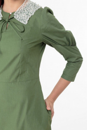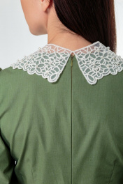 Романтичное платье из премиального хлопка со съемным воротником - выбор современной леди! Платье полуприлегающего силуэта, отрезное по линии талии, длиной миди. На передней и задней части лифа выполнены декоративные талиевые вытачки. Рукава имеют интересный подрез, верхняя часть обьемно присборена по шву подреза и окату. Длина рукава 3/4 По центру переда обработана застежка "капля" с навесной петлёй и пуговицей. По спинке – потайная молния. Съемный воротничок дополняет образ, в зависимости от случая, платье можно носить и без него. Замеры: Рост фотомодели – 171 см. Размер – 44. ОГ-обхват груди. ОТ-обхват талии. ОБ-обхват бедер. ДИ-длина изделия. ДР-длина рукава. Размер 44. ОГ-88; ОТ-76; ОБ-108; ДИ-115; ДР-52 Размер 46. ОГ-92; ОТ-80; ОБ-112; ДИ-115; ДР-52 Размер 48. ОГ-96; ОТ-84; ОБ-116; ДИ-115; ДР-52 Размер 50. ОГ-100; ОТ-88; ОБ-120; ДИ-115; ДР-52