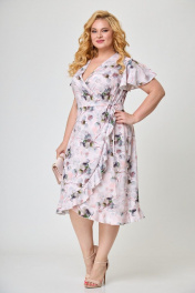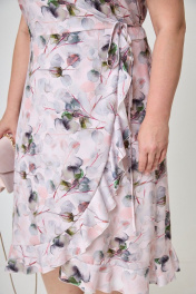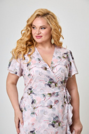 Платье с запахом из легкой ткани с завязками и воланами Anelli 1062 розовый+принт