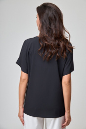 Черная блуза с спущенным плечом и отворотами Anelli 1082 черный