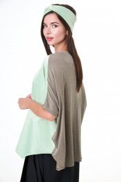 Блуза выполнена в комбинации полотен различных фактур одной тональности. Свободный силуэт с ассиметричным низом и элегантным вырезом горловины лодочкой. Замеры: Рост фотомодели -171 см. Размер фотомодели - 44. ОГ-обхват груди; ОТ-обхват талии; Об-обхват бедер; ДИ-длина изделия; ДР-длина рукава. Размер 52 ОГ-126,ОТ-126, ОБ-126, ДИ-70, ДР-37. Размер 54 ОГ-130,ОТ-130, ОБ-130, ДИ-70, ДР-37. Размер 56 ОГ-134,ОТ-134, ОБ134-, ДИ-71, ДР-37.