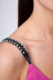 Платье с пайетками футляр с лодочным вырезом Anelli 1180 черный-фуксия