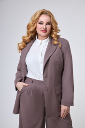 Деловой костюм из вельвета: жакет и брюки палаццо Anelli 1190 светлый_кофе
