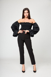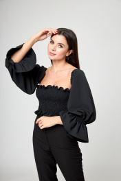 Блуза с прилегающим лифом, полностью собранный на ликру прекрасно сядет на любую фигуру. Рукава сосборенные по линии оката на резинку и в нижней части. Рукава можно опустить с плечей, выгодно подчеркивая линию декольте и плеч. Послужит нарядом для выхода в свет и для повседневной носки. Носите блузу с брюками, юбками и джинсам. Замеры для каждого размера: ОГ- обхват груди; ОТ-обхват талии; ОБ-обхват бедер; ДИ-длина изделия; ДР-длина рукава. Замеры: Размер 42: ОГ-64(тянется); ОТ-56 (тянется); ДИ-23; ДР-53. Размер 44: ОГ-66(тянется); ОТ-58 (тянется); ДИ-23; ДР-53. Размер 46: ОГ-68(тянется); ОТ-60 (тянется); ДИ-23; ДР-53. Размер 48: ОГ-70(тянется); ОТ-62(тянется); ДИ-23; ДР-53.