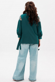 Элегантная блуза с кружевными вставками по рукавам станет идеальным дополнением вашего гардероба. Изготовленная из мягкого хлопкового полотна она сочетает в себе комфорт и стиль. Прямой силуэт и втачные рукава обеспечивают свободу движений, а рубашечный воротник на стойке придаёт образу утончённость. Функциональная застёжка на пуговицы по всей длине добавляет практичности, а особое внимание привлекают рукава: в их верхней части изящное хлопковое ажурное кружево создает романтичный акцент. Низ рукавов аккуратно присборен на манжетах, которые кокетливо завязываются на бант, добавляя нотку игривости. Эта блуза от Анелли прекрасно подойдёт как для повседневных, так и для более нарядных случаев, позволяя вам оставаться стильной и уверенной в себе. Замеры: Размер 50: ОГ-114; ОБ-120; ОП-52; ДИ-69; ДР-50; Размер 52: ОГ-118; ОБ-124; ОП-54; ДИ-70; ДР-51; Размер 54: ОГ-122; ОБ-128; ОП-54; ДИ-70; ДР-51; Размер 56: ОГ-126; ОБ-132; ОП-56; ДИ-71; ДР-52; Размер 58: ОГ-130; ОБ-136; ОП-56; ДИ-72; ДР-52.