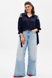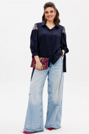 Элегантная блуза с кружевными вставками по рукавам станет идеальным дополнением вашего гардероба. Изготовленная из мягкого хлопкового полотна она сочетает в себе комфорт и стиль. Прямой силуэт и втачные рукава обеспечивают свободу движений, а рубашечный воротник на стойке придаёт образу утончённость. Функциональная застёжка на пуговицы по всей длине добавляет практичности, а особое внимание привлекают рукава: в их верхней части изящное хлопковое ажурное кружево создает романтичный акцент. Низ рукавов аккуратно присборен на манжетах, которые кокетливо завязываются на бант, добавляя нотку игривости. Эта блуза от Анелли прекрасно подойдёт как для повседневных, так и для более нарядных случаев, позволяя вам оставаться стильной и уверенной в себе. Замеры: Размер 50: ОГ-114; ОБ-120; ОП-52; ДИ-69; ДР-50; Размер 52: ОГ-118; ОБ-124; ОП-54; ДИ-70; ДР-51; Размер 54: ОГ-122; ОБ-128; ОП-54; ДИ-70; ДР-51; Размер 56: ОГ-126; ОБ-132; ОП-56; ДИ-71; ДР-52; Размер 58: ОГ-130; ОБ-136; ОП-56; ДИ-72; ДР-52.