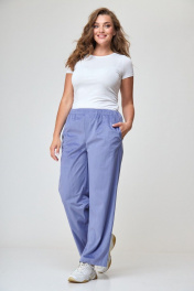 Длинные брюки из вельвета с резинкой и карманами Anelli 1240.2 голубой