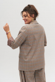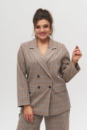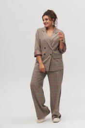 Жакет женский оверсайз, длина до середины бедра. Рукав втачной, длинный. По переду прорезные карманы с клапаном. Классический жакетный воротник с отложным лацканом. Жакет на подкладке. Брюки женские прямого силуэта, высокая посадка. По переду боковые карманы и застежка молния. Параллельно боковому шву идут лампасы. Прилегание по спинке достигнуто при помощи талиевых вытачек. Притачной пояс на петлю пуговицу, от бокового шва по спинке на резинке. Костюм несмотря на оверсайз силуэт придаст вашему образу женственности и лёгкости, в нем вы будете чувствовать себя стильно, уверенно и при этом комфортно. Замеры: Размер 44: Жакет: ОГ-102; ОТ-100; ОБ-102; ДИ-74; ДР-59 Брюки: ОТ-74;ОБ-97; ДИ-110.5 Размер 46: Жакет: ОГ-106;ОТ-103; ОБ-104; ДИ-74.5; ДР-59 Брюки: ОТ-76; ОБ-101; ДИ-110.5 Размер 48: Жакет: ОГ-108; ОТ-108; ОБ-110; ДИ-75; ДР-60 Брюки: ОТ-83; ОБ-108; ДИ-111 Размер 50: Жакет: ОГ-112;ОТ-112; ОБ-116; ДИ-75.5; ДР-60 Брюки: ОТ-89;ОБ-111; ДИ-111 Размер 52: Жакет: ОГ-118; ОТ-118; ОБ-120; ДИ-76; ДР-60 Брюки: ОТ-92; ОБ-120; ДИ-111 Размер 54: Жакет: ОГ-124; ОТ-124; ОБ-125; ДИ-76.5; ДР-60 Брюки: ОТ-93; ОБ-125; ДИ-111 Размер 56: Жакет: ОГ-127; ОТ-128; ОБ- 129; ДИ-77; ДР-60 Брюки: ОТ-96; ОБ-130; ДИ-111.5 Размер 58: Жакет: ОГ-132; ОТ-132; ОБ-133; ДИ-77.5; ДР-60 Брюки: ОТ-102; ОБ-137; ДИ-111.5