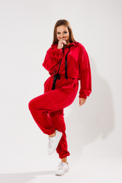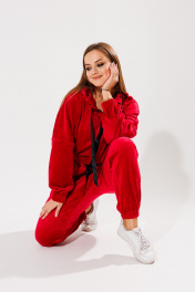 Костюм из бархата толстовка и брюки с высокой посадкой Anelli 1305 фуксия