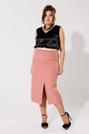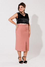 Розовая юбка-карандаш с разрезом и высокой посадкой Anelli 1317 розово-персиковый