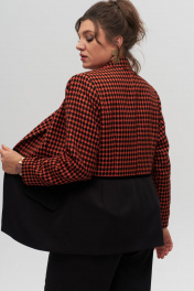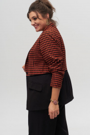 Жакет женский полуприлегающего силуэта, длиной до линии бедра. Рукав втачной, длинный, зауженный к низу. По переду прорезные карманы с клапаном. Классический жакетный воротник с отложным лацканом, застежка на петли пуговицы. Жакет отрезной по линии талии, линия отреза декорированна бархатной лентой. На подкладке. При съёмке использован топ 1087.1 Цвет на фото может отличаться от цвета изделия вживую из-за разницы освещения и цветопередачи экранов, на которых просматривается изображение. Будем благодарны за честный отзыв с фото. Замеры: Размер 52 Жакет: ОГ 109; ОТ 100; ОБ 113; ДИ 77; ДР 59. Размер 54: Жакет ОГ 114; ОТ 105; ОБ 118; ДИ 77; ДР 59. Размер 56: Жакет ОГ 120; ОТ 110; ОБ 123; ДИ 77.5; ДР 59. Размер 58: Жакет ОГ 123; ОТ 115; ОБ 128; ДИ 77.5; ДР 59.