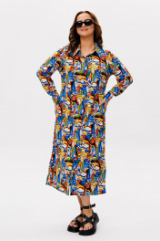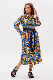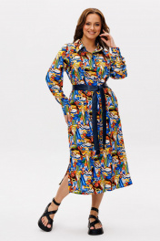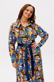 Платье-рубашка полуприлегающего силуэта воплощает гармонию элегантности и непринуждённого стиля. Длинный крой придаёт образу утончённость, а втачные рукава с манжетами добавляют чёткость линий. По переду проходит классическая планка с пуговицами на всю длину, позволяющая легко регулировать степень открытости платья. Функциональность и удобство подчёркивают боковые разрезы и аккуратные карманы на уровне бёдер, сохраняя при этом лаконичность силуэта. Горловина оформлена воротником со стойкой, который придаёт образу лёгкую строгость. Особый шарм платью придаёт съёмный пояс с кисточками, подчёркивающий талию и добавляющий нотку игривости. А принт «Пикассо» оживляет образ, наполняя его художественной теплотой и романтикой. Этот наряд от Анелли — настоящая находка в гардеробе. Его можно носить как самостоятельное платье, сочетая с лёгкими сандалиями или туфельками, или использовать в качестве удлинённой рубашки, накинув поверх джинсов или под укороченный кардиган. Идеально для прогулок, свиданий и встреч с друзьями — везде, где хочется чувствовать себя женственной и свободной. Замеры: Размер 46: ОГ-100; ОТ-92; ОБ-104; ОП-37; ДИ-118; ДР-60; Размер 48: ОГ-104; ОТ-96; ОБ-108; ОП-38; ДИ-118; ДР-60; Размер 50: ОГ-108; ОТ-100; ОБ-112; ОП-40; ДИ-118; ДР-60; Размер 52: ОГ-112; ОТ-106; ОБ-120; ОП-40; ДИ-118; ДР-60; Размер 54: ОГ-116; ОТ-112; ОБ-124; ОП-42; ДИ-119; ДР-60; Размер 56: ОГ-120; ОТ-118; ОБ-128; ОП-42; ДИ-120; ДР-60;