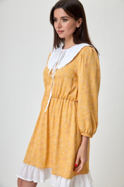 Это романтичное платье от Анелли идеально подчеркивает вашу женственность и нежность. Свободный крой, округлая горловина и длина до колена создают образ воздушности и легкости. Рукав 3/4 с сборкой по окату и низом на резинке добавляет игривости и удобства. Линия талии подчеркнута эластичной резинкой, что придает фигуре изящество. Съемный воротник и подъюбник из хлопка позволяют создавать разнообразные образы, делая его универсальным вариантом для любого случая. Благодаря своему цвету и цветочному принту платье искрится женственностью и легкостью, оставаясь при этом актуальным и стильным. Замеры: Размер 42: ОТ-91; ОТ-88; ОБ-106; ДИ-80; ДР-52; ОП-46; Размер 44: ОТ-95; ОТ-92; ОБ-110; ДИ-82; ДР-53; ОП-46; Размер 46: ОТ-99; ОТ-96; ОБ-114; ДИ-82; ДР-52; ОП-48; Размер 48: ОТ-104; ОТ-100; ОБ-118; ДИ-82; ДР-53; ОП-48; Размер 50: ОТ-106; ОТ-104; ОБ-122; ДИ-83; ДР-54; ОП-54; Размер 52: ОТ-110; ОТ-108; ОБ-126; ДИ-83; ДР-54; ОП-56.