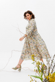 Элегантное шифоновое платье с комбинированным низом Anelli 1362 крем