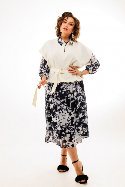 Эта блуза-жилет — идеальное сочетание стиля и комфорта! Её прямой силуэт и спущенное плечо создают мягкий и утонченный силуэт, а круглый вырез горловины подчеркивает изящество. Потайная молния по среднему шву полочки добавляет лаконичности, а резинка по бокам в области талии мягко акцентирует фигуру, создавая эффектную посадку. В комплекте с блузой идет пояс, который позволяет подчеркнуть талию и добавить образу женственности. Эта блуза — настоящая находка для создания разнообразных образов: её можно сочетать с брюками, юбками или стилизовать под платье, создавая эффектный и запоминающийся лук. Выполненная в нежных тонах, она станет ярким акцентом вашего гардероба, подчеркивая вашу индивидуальность и добавляя образу легкости и элегантности. Подарите себе ощущение уверенности и стиля с этой прекрасной блузой от Анелли, которая точно не останется незамеченной! На модели в блузе «птица белая» платье 1362. Замеры: Размер 46: ОГ-118; ОБ-118; ДИ-52; ШП-25; Размер 48: ОГ-120; ОБ-120; ДИ-52; ШП-26; Размер 50: ОГ-128; ОБ-130; ДИ-52; ШП-27; Размер 52: ОГ-130; ОБ-130; ДИ-52; ШП-28;