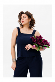Этот топ с полуприлегающим силуэтом создан для тех, кто ценит комфорт и лаконичную эстетику. Рельефные линии по переду и спинке подчеркивают форму, добавляя образу утонченность. Широкие бретели с декоративными деталями придают лёгкую изысканность, а застежка на молнию по спинке обеспечивает удобство при надевании. Мягкая ткань и продуманный крой делают этот топ идеальной основой для любого комплекта. Он легко сочетается с брюками, юбкой или жакетом, становясь универсальным элементом гардероба. Это не просто вещь, а необходимая база, в которой вы будете чувствовать себя уверенно и комфортно в любой ситуации. На модели брюки от Анелли 1416.1. Замеры: Размер 44: ОГ-86; ОТ-76; ОБ-92; ДИ(по боку)-29; Размер 46: ОГ-90; ОТ-80; ОБ-98; ДИ(по боку)-29; Размер 48: ОГ-94; ОТ-85; ОБ-104; ДИ(по боку)-30; Размер 50: ОГ-98; ОТ-90; ОБ-110; ДИ(по боку)-31; Размер 52: ОГ-102; ОТ-94; ОБ-114; ДИ(по боку)-32;