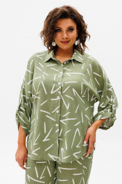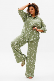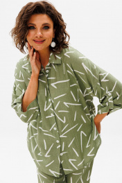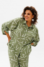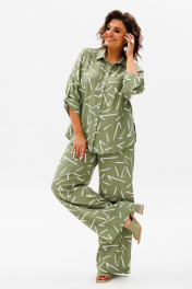 Леновый летний костюм из рубашки и брюк с принтом Anelli 1406 зеленый_чай