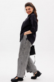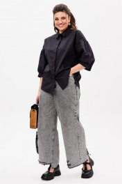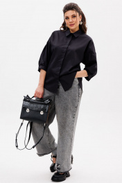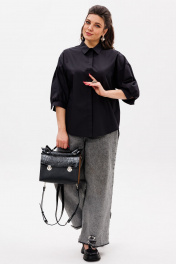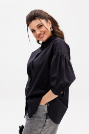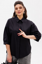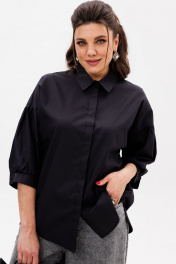 Черная деловая блуза из хлопка с комфортным кроем Anelli 1414 тень_стиля