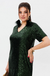 Платье нарядное из пайеток с V-образным вырезом Anelli 1441 изумрудная_змея