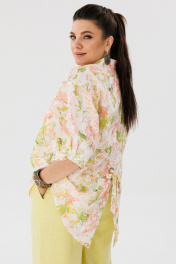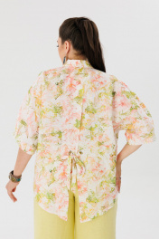 Льняная летняя блуза на каждый день с завязками и рукавом летучая мышь Anelli 1464 цветок_миндаля