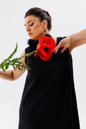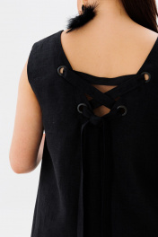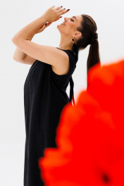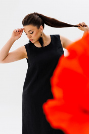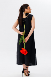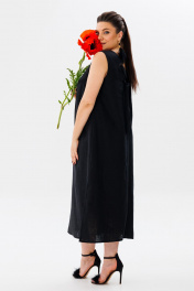 летний льняной сарафан трапеция с разрезами и вырезом Anelli 1472 черный_лебедь