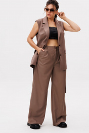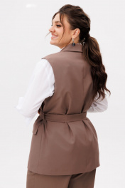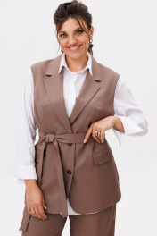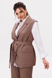 Этот полуприлегающий жилет с утончённой однобортной застёжкой на петли и пуговицы станет великолепным дополнением вашего гардероба. Прорезные карманы с аккуратным клапаном и изящный воротник с отложными лацканами придают ему утончённый и стильный вид. Входящий в комплект пояс эффектно подчеркивает талию, создавая идеальный силуэт и добавляя нотку женственности. Жилет прекрасно сочетается как с классическими брюками, так и с романтичными юбками, а также выглядит потрясающе на платьях. Он станет ярким акцентом в вашем образе, подчеркивая ваш безупречный вкус и уникальную индивидуальность. С этим шикарным жилетом у вас есть бесконечные возможности для стилизации — дайте волю своей фантазии и создавайте уникальные образы, которые будут восхищать окружающих каждый день! На модели в жилете цвета «кора дуба» брюки 1702, рубашка 1203.1 и топ 767. Также можно купить жилет и брюки в костюме 1501. Рост модели 173 см, размер 52. Для того чтобы подобрать для себя идеальный размер, обязательно сверяйтесь с замерами в описании, мы их делаем индивидуально к каждому изделию. Замеры: Размер 50: ОГ-114; ОТ-110; ОБ-116; ДИ-73; Размер 52: ОГ-119; ОТ-115; ОБ-121; ДИ-73; Размер 54: ОГ-124; ОТ-120; ОБ-126; ДИ-73; Размер 56: ОГ-129; ОТ-125; ОБ-131; ДИ-73; Размер 58: ОГ-134; ОТ-130; ОБ-136; ДИ-73; Размер 60: ОГ-139; ОТ-135; ОБ-141; ДИ-74;