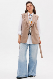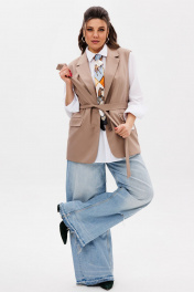Изысканный жилет от Анелли. Этот полуприлегающий жилет с утончённой однобортной застёжкой на петли и пуговицы станет великолепным дополнением вашего гардероба. Прорезные карманы с аккуратным клапаном и изящный воротник с отложными лацканами придают ему утончённый и стильный вид. Входящий в комплект пояс эффектно подчеркивает талию, создавая идеальный силуэт и добавляя нотку женственности. Жилет прекрасно сочетается как с классическими брюками, так и с романтичными юбками, а также выглядит потрясающе на платьях. Он станет ярким акцентом в вашем образе, подчеркивая ваш безупречный вкус и уникальную индивидуальность. С этим шикарным жилетом у вас есть бесконечные возможности для стилизации — дайте волю своей фантазии и создавайте уникальные образы, которые будут восхищать окружающих каждый день! На модели в жилете цвета «ночи» брюки 1416.1 и белая рубашка 1203.1. На модели в жилете цвета «тосканский песок» платье 1504 и белая рубашка 1203.1. Замеры: Размер 50: ОГ-114; ОТ-110; ОБ-116; ДИ-73; Размер 52: ОГ-119; ОТ-115; ОБ-121; ДИ-73; Размер 54: ОГ-124; ОТ-120; ОБ-126; ДИ-73; Размер 56: ОГ-129; ОТ-125; ОБ-131; ДИ-73; Размер 58: ОГ-134; ОТ-130; ОБ-136; ДИ-73; Размер 60: ОГ-139; ОТ-135; ОБ-141; ДИ-74.