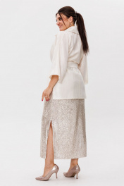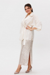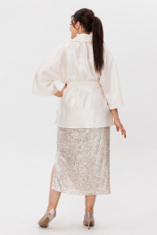 Великолепный жакет-рубашка от Анелли — идеальное сочетание стиля и комфорта, которое станет незаменимым элементом вашего гардероба. Его цельнокроеные рукава в стиле кимоно дарят свободу движений и подчеркивают элегантность силуэта, создавая гармоничный образ. Воротник рубашечного типа добавляет изысканности и классического шарма, а пояс, который можно завязать на талии, акцентирует внимание на вашей фигуре, придавая образу женственность и стиль. Этот жакет-рубашка легко комбинируется с вашими любимыми юбками, платьями и брюками, открывая перед вами миллион вариантов стилизации. Хотите создать романтичный образ для прогулки по городу? Сочетайте его с легким платьем и сандалиями. Или же вы предпочитаете более строгий стиль для офиса? Носите его с классическими брюками и лодочками — вы будете выглядеть безупречно! Не упустите возможность добавить этот универсальный айтем в свою коллекцию. Он станет вашим верным спутником в любых обстоятельствах, позволяя вам оставаться на высоте в любой ситуации. Позвольте себе быть стильной и уверенной, выбирая вещи, которые подчеркивают вашу индивидуальность. На модели в жакетике цвета шампань юбка из пайеток 1499, платье из пайеток 1507. Замеры: Размер 50: ОГ-116; ОБ-126; ОП-52; ДИ-76; ДР от горла - 57; Размер 52: ОГ-120; ОБ-130; ОП-54; ДИ-77; ДР от горла - 57; Размер 54: ОГ-124; ОБ-134; ОП-56; ДИ-77; ДР от горла - 58; Размер 56: ОГ-128; ОБ-138; ОП-58; ДИ-77; ДР от горла - 57; Размер 58: ОГ-132; ОБ-142; ОП-59; ДИ-78; ДР от горла - 58; Размер 60: ОГ-138; ОБ-148; ОП-60; ДИ-79; ДР от горла - 60.