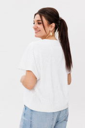 Круглогодняя белая блузка из пайеток с асимметричным низом Anelli 1522 мартини