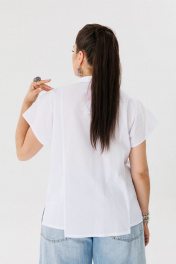 Асимметричная рубашка свободного кроя – это воплощение современной элегантности и нестандартного подхода к классическому силуэту. Ее удлиненный крой до бедра мягко драпируется, создавая динамичные линии и подчеркивая легкость движения. Необычная асимметрия кроя придает модели выразительность: одна сторона может быть слегка удлинена или оформлена мягкими складками, добавляя образу художественную свободу. Короткий цельнокроеный рукав сохраняет лаконичность и комфорт, гармонично сочетаясь с объемным силуэтом. Классический отложной воротник добавляет строгости, балансируя между утонченной формальностью и современной расслабленностью. Застежка на пуговицы по всей длине переда позволяет регулировать степень открытости, создавая вариативность в ношении – от аккуратно застегнутого варианта до свободного, с эффектом небрежной элегантности. Эта рубашка от Анелли – идеальный выбор для тех, кто ценит необычные детали и стремится освежить привычный гардероб. Ее лаконичный, но выразительный дизайн станет ярким акцентом в сочетании с базовыми вещами или дополнит сложные многослойные образы, привнося в них ноту современной легкости. Замеры: Размер 52: ОГ-122; ОБ-126; ДИ-66; ШП-29; Размер 54: ОГ-128; ОБ-130; ДИ-67; ШП-31; Размер 56: ОГ-132; ОБ-134; ДИ-67; ШП-32; Размер 58: ОГ-136; ОБ-138; ДИ-68; ШП-32;