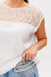Эта блуза из нежной вискозы с изысканным кружевным декором по переду создана для тех, кто ценит повседневную элегантность. Мягкая струящаяся ткань комфортно облегает фигуру, а ажурная кружевная вставка добавляет образу женственности и лёгкий налёт романтики. Идеально сочетая в себе универсальность и изюминку, блуза легко впишется в любой образ — будь то строгий жакет для офиса или любимые джинсы для прогулки. Ее лаконичный крой и деликатный декор делают блузу одинаково уместным как для работы, так и для отдыха. Нежная фактура вискозы приятна к телу, а кружевной элемент создает эффектный, но ненавязчивый акцент. Эта блуза от Анелли — тот самый случай, когда повседневность встречается с изысканностью. Замеры: Размер 44: ОГ-106; ОБ-110; ДИ-57; ШП-14,5; Размер 46: ОГ-110; ОБ-114; ДИ-58; ШП-14,5; Размер 48: ОГ-114; ОБ-118; ДИ-58; ШП-15; Размер 50: ОГ-118; ОБ-122; ДИ-58; ШП-15,5; Размер 52: ОГ-122; ОБ-126; ДИ-59; ШП-15,5; Размер 54: ОГ-126; ОБ-130; ДИ-59; ШП-16.