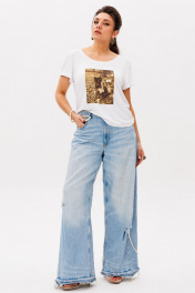 Футболка - это та самая идеальная база, в которой простота встречается с характером. Мягкий хлопок приятно ложится к телу, даря ощущение лёгкости и комфорта в течение всего дня, а аккуратный округлый вырез и короткий рукав с деликатным отворотом создают расслабленный, но продуманный силуэт. Особое настроение задаёт принт с немецкой овчаркой по имени Поль - он добавляет образу индивидуальности и тёплого настроения, превращая повседневную вещь в маленькую историю, к которой хочется возвращаться снова и снова. С душой и любовью от Анелли. Размер 46: ОГ-90; ОБ-94; ОП-36; ДИ-54; ДР-14; Размер 48: ОГ-96; ОБ-100; ОП-38; ДИ-54; ДР-15; Размер 50: ОГ-102; ОБ-106; ОП-40; ДИ-53; ДР-15; Размер 52: ОГ-108; ОБ-112; ОП-42; ДИ-53; ДР-16.