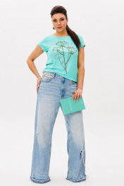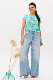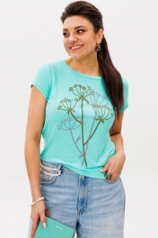 Свежий бирюзовый оттенок этой футболки от Анелли, притягивает взгляд — насыщенный, сочный, с необычным переливом, напоминающим морскую волну. Модель прямого силуэта с умеренным объемом и средней длиной создает комфортную повседневную основу для любых образов. Округлая горловина с эффектом «открытого среза» и обработкой бейкой выглядит современно и стильно. Укороченные втачные рукава и аккуратно обработанный низ подчеркивают лаконичность дизайна. Особый шарм футболке придает необычный принт — тонкие стебли укропа, напоминающие игру света в теплице у бабушки. Сшита из мягкой хлопковой ткани, которая нежно облегает фигуру, позволяя коже дышать. Идеальный вариант для летних прогулок, встреч с друзьями или отдыха у моря. Сочетайте с шортами, льняными брюками или джинсами — бирюзовый оттенок освежит любой образ. Замеры: Размер 44: ОГ-86; ОБ-92; ОП-30; ДИ-52; ДР-12; Размер 46: ОГ-90; ОБ-96; ОП-32; ДИ-52; ДР-12; Размер 48: ОГ-94; ОБ-100; ОП-32; ДИ-54; ДР-13; Размер 50: ОГ-98; ОБ-104; ОП-34; ДИ-54; ДР-13; Размер 52: ОГ-102; ОБ-108; ОП-34; ДИ-54; ДР-14; Размер 54: ОГ-106; ОБ-112; ОП-36; ДИ-54; ДР-14.