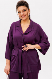 Костюм в пижамном стиле от Анелли — роскошь повседневности. Шелк армани — это всегда про изысканную текстуру и благородное течение ткани. В этом костюме вы почувствуете, как материал мягко обволакивает кожу, даря ощущение комфорта и лёгкой невесомости. Блуза с изящной линией плеча и расширенным укороченным рукавом создаёт элегантную небрежность. Классический воротник с лацканами и накладные карманы добавляют стильную строгость, а застёжка на пуговицу и декоративный съёмный пояс позволяют играть с силуэтом. Брюки с эластичным поясом и мягким расширением к низу подчеркнут вашу женственность, не ограничивая движений. Они струятся по фигуре, делая каждый шаг воздушным. Этот костюм — идеальный спутник для утра с круассаном, прогулки по городу или встречи за кофе. Добавьте каблуки — и образ заиграет новыми гранями, сочетая в себе домашний уют и светскую элегантность. Позвольте себе быть королевой в любой ситуации — этот наряд создан именно для этого. Замеры: Размер 46: Блуза: ОГ-116; ОБ-116; ОП-44; ДИ-65; ДР-33; ШП-24; Брюки: ОТ-90; ОБ-104; ДИ-104; ширина по низу - 54; Размер 48: Блуза: ОГ-118; ОБ-118; ОП-44; ДИ-68; ДР-31; ШП-26; Брюки: ОТ-96; ОБ-110; ДИ-105; ширина по низу - 56; Размер 50: Блуза: ОГ-122; ОБ-122; ОП-44; ДИ-69; ДР-30; ШП-28; Брюки: ОТ-102; ОБ-114; ДИ-106; ширина по низу - 56; Размер 52: Блуза: ОГ-126; ОБ-126; ОП-44; ДИ-70; ДР-29; ШП-29; Брюки: ОТ-108; ОБ-118; ДИ-107; ширина по низу - 56; Размер 54: Блуза: ОГ-130; ОБ-130; ОП-44; ДИ-70; ДР-27; ШП-31; Брюки: ОТ-114; ОБ-124; ДИ-106; ширина по низу - 58; Размер 56: Блуза: ОГ-134; ОБ-134; ОП-44; ДИ-70; ДР-26; ШП-33; Брюки: ОТ-118; ОБ-128; ДИ-107; ширина по низу - 58; Размер 58: Блуза: ОГ-138; ОБ-138; ОП-44; ДИ-70; ДР-24; ШП-35; Брюки: ОТ-122; ОБ-132; ДИ-107; ширина по низу - 60.