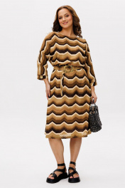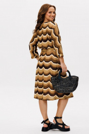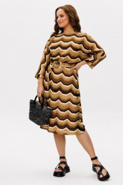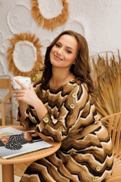 Трикотажное платье на подкладке создает ощущение комфорта и утонченной элегантности. Его силуэт плавно расширяется книзу, придавая образу женственность и легкость движения. Деталью, позволяющей менять настроение образа, служит съемный пояс – с ним платье выглядит более собранным и строгим, а без него приобретает свободный, струящийся характер. Изящный трикотаж с ажурной текстурой, напоминающей кружево, придает наряду особую деликатность и романтичность. Пуговицы не только выполняют декоративную функцию, но и добавляют ненавязчивую изюминку, подчеркивая продуманность каждой детали. Это платье – идеальный выбор для тех, кто ценит сочетание удобства, стиля и изысканности. Замеры: Размер 44: ОГ-92; ОТ-80; ОБ-102; ОП-40; ДИ-104; ДР от горловины - 54; Размер 46: ОГ-96; ОТ-84; ОБ-106; ОП-40; ДИ-104; ДР от горловины - 54; Размер 48: ОГ-100; ОТ-88; ОБ-110; ОП-42; ДИ-106; ДР от горловины - 54; Размер 50: ОГ-104; ОТ-92; ОБ-114; ОП-42; ДИ-106; ДР от горловины - 55;