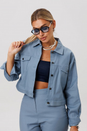 Жакет от Анелли воплощает невероятную лёгкость и женственность. Его классический дизайн остаётся актуальным вне зависимости от сезона, объединяя в себе удобство и безупречный стиль. Такой базовый жакет в цвете «горная роса» обязательно должен занять место в вашем гардеробе. Жакет укороченный, прямого кроя. Переднюю часть украшают нагрудные карманы с декоративными клапанами. Застёжка на петли и кнопки добавляет модели характер, а спинку завершает изящная кокетка. Длинные рукава заканчиваются манжетами, а горловина обработана аккуратным воротником. Его можно носить вместе с брюками 1565.2 и создать цельный образ в костюме 1565, так и по отдельности, комбинируя с другими вещами. Жакет станет прекрасной основой для множества луков - от нежных и женственных до смелых и дерзких. Размер 44: ОГ-106; ОБ-102; ОП-38; ДИ-46; ДР-56; ШП-17; Размер 46: ОГ-110; ОБ-106; ОП-39; ДИ-46; ДР-56; ШП-17.5; Размер 48: ОГ-114; ОБ-110; ОП-39; ДИ-45; ДР-56; ШП-18; Размер 50: ОГ-118; ОБ-114; ОП-40; ДИ-46; ДР-56; ШП-18