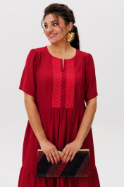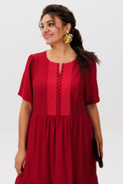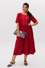 Платье от Анелли, в котором хочется кружиться в цвете «бургундское кружево». Воздушный силуэт, струящийся по фигуре, мягко подчеркивает линии, даря свободу и легкость. V-образный вырез в обрамлении округлой горловины добавляет изящный акцент, а игра воланов оживляет каждый шаг. Короткие рукава и удобные карманы вписаны так естественно, что кажутся частью образа, а не просто деталью. И завершающий штрих — нежное кружево, придающее наряду тонкую романтичность. Это платье создано для тех, кто ценит комфорт, не жертвуя элегантностью. Наденьте его на свидание — и мягкие складки воланов подчеркнут вашу женственность. Для прогулки по городу сочетайте с джутом 1528.1 или 717 — получится стильно и непринужденно. А легкая ткань и свободный крой платья делают его прекрасным выбором для теплых дней, когда хочется и легкости, и изысканности. Замеры: Размер 52: ОГ-108; ОТ-104; ОБ-155; ОП-40; ДИ-118; ДР-27; Размер 54: ОГ-113; ОТ-109; ОБ-160; ОП-42; ДИ-118; ДР-27; Размер 56: ОГ-118; ОТ-114; ОБ-166; ОП-44; ДИ-119; ДР-28; Размер 58: ОГ-122; ОТ-120; ОБ-172; ОП-46; ДИ-119; ДР-28; Размер 60: ОГ-126; ОТ-124; ОБ-178; ОП-47; ДИ-119; ДР-28; Размер 62: ОГ-130; ОТ-128; ОБ-184; ОП-49; ДИ-119; ДР-28;