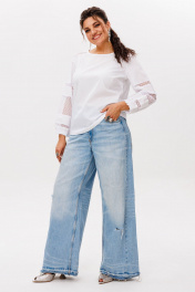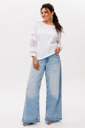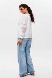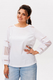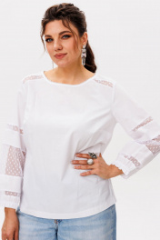 Воздушная блуза из натурального хлопка, украшенная ажурными гипюровыми вставками, создает образ утонченной легкости. Свободный крой мягко облегает фигуру, подчеркивая ее силуэт невесомыми драпировками. Круглый вырез горловины, декорированный изящной серебряной цепочкой с бусинами, добавляет ноту мерцающей элегантности. Рукава, собранные на деликатную резинку, создают мягкие буфы, завершая романтичный и в то же время современный образ. Эта блуза от Анелли — воплощение нежной женственности, где каждая деталь говорит об искусном балансе между воздушной свободой и изысканной отделкой. Замеры: Размер 42: ОГ-94; ОТ-86; ОБ-96; ОП-32; ДИ-57; ДР-55; Размер 44: ОГ-98; ОТ-92; ОБ-100; ОП-34; ДИ-57; ДР-55; Размер 46: ОГ-102; ОТ-96; ОБ-104; ОП-34; ДИ-58; ДР-56; Размер 48: ОГ-106; ОТ-102; ОБ-108; ОП-36; ДИ-58; ДР-56; Размер 50: ОГ-110; ОТ-106; ОБ-114; ОП-38; ДИ-58; ДР-56; Размер 52: ОГ-116; ОТ-112; ОБ-118; ОП-38; ДИ-60; ДР-56;