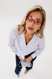 Эта рубашка «карт бланш» — гораздо больше, чем просто базовый элемент гардероба. Она представляет собой идеальную основу для бесчисленного множества образов. Ее универсальная природа позволяет ей быть идеальным компаньоном для строгих офисных брюк, элегантной юбки-карандаш, джинсов с завышенной талией или кюлотов свободного кроя, трансформируясь от повседневной элегантности к деловой сдержанности. Выполнена из высококачественного хлопка, украшенного интеллектуальным и игривым принтом, вдохновленным изысканными карточными мастями. Главной же особенностью, задающей тон всему силуэту, является актуальный удлиненный воротник, который ниспадает изящными линиями, создавая современный и утонченный акцент. Втачные рукава, классические по своей форме, приобретают особое звучание благодаря изящной сборке, которая мягко фиксируется на аккуратных манжетах, добавляя образу объем и динамику. Застежка на пуговицы по переду завершает безупречную композицию, подчеркивая четкую и лаконичную линию полочки. Эта рубашка от Анелли — это та самая вещь, в которой каждая деталь продумана до мелочей, чтобы дарить своему обладателю ощущение непревзойденного комфорта. Замеры: Размер 42: ОГ-90; ОТ-84; ОБ-96; ОП-32; ДИ-60; ДР-63; Размер 44: ОГ-94; ОТ-90; ОБ-100; ОП-34; ДИ-60; ДР-63; Размер 48: ОГ-104; ОТ-102; ОБ-108; ОП-36; ДИ-60; ДР-63; Размер 50: ОГ-108; ОТ-108; ОБ-114; ОП-38; ДИ-62; ДР-64;
