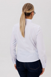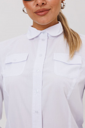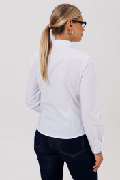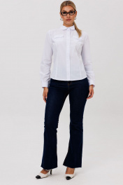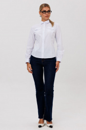 Классическая блуза полуприлегающего силуэта, создающая элегантный и утонченный силуэт. Модель сконструирована с талевыми вытачками по переду и спинке, что обеспечивает идеальную посадку по фигуре. Дополняют образ накладные карманы с аккуратными клапанами. Воротник сорочечного типа и застежка на пуговицы, оформленная притачными планками с декоративной отделкой, подчеркивают классический стиль. Длинные рукава завершаются манжетами, а прорежка на них выделена сложной технологической обработкой с использованием отделочной детали. Эта блуза — универсальный базовый предмет гардероба, который легко комбинируется с деловой и повседневной одеждой. Она составляет гармоничный ансамбль с юбкой, брюками или костюмом, делая образ завершенным и стильным. Замеры: Размер 40: ОГ-88; ОТ-76; ОБ-88; ОП-30; ДИ-57; ДР-61; Размер 42: ОГ-92; ОТ-80; ОБ-92; ОП-30; ДИ-57; ДР-61; Размер 44: ОГ-96; ОТ-84; ОБ-96; ОП-32; ДИ-58; ДР-61; Размер 46: ОГ-100; ОТ-88; ОБ-100; ОП-32; ДИ-59; ДР-62; Размер 48: ОГ-104; ОТ-92; ОБ-104; ОП-33; ДИ-59; ДР-63; Размер 50: ОГ-108; ОТ-96; ОБ-108; ОП-34; ДИ-60; ДР-63; Размер 52: ОГ-112; ОТ-100; ОБ-112; ОП-34; ДИ-60; ДР-63.