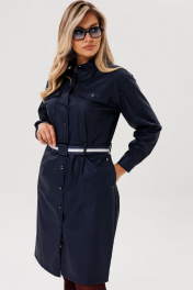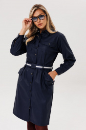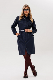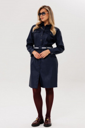 Элегантное платье из эко кожи полуприлегающего силуэта. Модель средней длины с центральной застежкой на пуговицы создает собранный и стильный образ. Переднюю часть платья украшают изящные притачные кокетки и функциональные накладные карманы с клапанами. Линию талии подчеркивает втачной пояс со шлевками, а боковые карманы добавляют практичности. Длинные рукава рубашечного типа заканчиваются на притачных манжетах. Завершает образ отложной воротник на отрезной стойке. Съемный пояс, входящий в комплект, и металлическая фурнитура придают образу динамику и индивидуальность. Это универсальное платье, которое идеально подойдет на каждый день, особенно хорошо с бордовыми колготами и лоферами. Замеры: Размер 52: ОГ-112; ОТ-94; ОБ-116; ОП-42; ДИ-100; ДР-56; ШП-16,5; Размер 54: ОГ-116; ОТ-98; ОБ-120; ОП-42; ДИ-100; ДР-56; ШП-17; Размер 56: ОГ-120; ОТ-102; ОБ-124; ОП-44; ДИ-100; ДР-56; ШП-17,5.