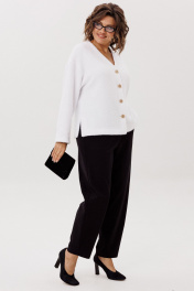 Погрузитесь в атмосферу утонченного комфорта с этим жакетом от Анелли. Он соткан из невероятно мягкого трикотажа, который нежно обволакивает фигуру, даря чувство защищенности и расслабленности. Его прямой силуэт со спущенным плечом и изящными разрезами по бокам струится легко и свободно, подчеркивая достоинства, не сковывая движений. Глубокий V-образный вырез горловины добавляет образу женственности и строгой элегантности, а классическая застежка на пуговицы завершает безупречный вид. Этот жакет — идеальный компаньон для вашей динамичной жизни: он поможет создать уверенный образ на важной встрече, станет элегантным решением для дня в офисе и согреет во время вечерней прогулки. Это та самая вещь, в которой вы будете чувствовать себя собранно, роскошно и по-настоящему уютно в любой момент вашего дня. Идеальный образ собран на модели с брюками 1660.1. Размер 52: ОГ-116, ОБ-116, ОП-46, ДИ-63, ДР-51, ШП-22; Размер 54: ОГ-120, ОБ-120, ОП-46, ДИ-64, ДР-50, ШП-21; Размер 56: ОГ-124, ОБ-124, ОП-48, ДИ-65, ДР-49, ШП-23; Размер 58: ОГ-128, ОБ-128, ОП-48, ДИ-65, ДР-49, ШП-23; Размер 60: ОГ-132, ОБ-132, ОП-50, ДИ-67, ДР-48, ШП-24; Размер 62: ОГ-136, ОБ-136, ОП-50, ДИ-67, ДР-48, ШП-24.