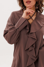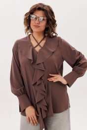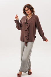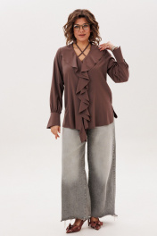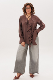 Эта блуза от Анелли — воплощение нежной романтики и воздушной лёгкости. Её прямой свободный крой струится мягкими складками, создавая изящный и непринуждённый силуэт, а лёгкая воздушность ткани придаёт образу пленительную невесомость. Глубокий V-образный вырез, украшенный воланами, подчеркивает изысканно-романтичный характер блузы. Эту историю дополняет игра завязок: их можно распустить для непринуждённой элегантности или завязать на шее, чтобы подчеркнуть трогательную женственность. Мягкие сборки на длинных рукавах, переходящие в аккуратные манжеты, и лёгкие разлетающиеся разрезы по бокам завершают картину, делая каждый жест и каждое движение частью изящного и мечтательного стиля. Особое очарование блузе придает ее цвет - нежный «молочный шоколад». Этот бархатистый, «вкусный» оттенок словно тает на коже, добавляя образу пленительной мягкости и делая эту модель настоящим искушением для настоящих ценительниц романтичного стиля.