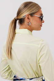 Классическая блуза отличается строгим и лаконичным дизайном. Ее передняя часть оформлена нагрудными вытачками, идущими от низа, и дополнена накладными карманами с закругленными краями. Спинка модели имеет талевые вытачки и цельнокроеную кокетку, которая плавно переходит на полочку, обеспечивая идеальную посадку по фигуре. Блузка застегивается на пуговицы по цельнокроеной планке и завершается воротником на стойке. Рукава являются втачными и заканчиваются манжетами с застежкой на пуговицу, что позволяет регулировать их ширину с помощью специальной паты. Эта модель станет универсальным элементом гардероба, подходящим для повседневной носки, учебы или соблюдения дресс-кода. Замеры: Размер 40: ОГ-86; ОТ-76; ОБ-92; ОП-29; ДИ-60; ДР-59; Размер 42: ОГ-90; ОТ-80; ОБ-96; ОП-31; ДИ-60; ДР-59; Размер 44: ОГ-94; ОТ-84; ОБ-100; ОП-32; ДИ-61; ДР-59; Размер 46: ОГ-98; ОТ-88; ОБ-104; ОП-34; ДИ-62; ДР-60; Размер 48: ОГ-102; ОТ-93; ОБ-108; ОП-35; ДИ-63; ДР-60; Размер 50: ОГ-106; ОТ-98; ОБ-112; ОП-36; ДИ-65; ДР-60.