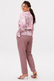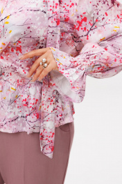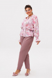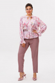 Эта блуза от Анелли изящно подчеркивает силуэт, оставаясь невероятно легкой и комфортной. Её свободный крой мягко следует за линиями тела, а элегантные сборки у талии создают утонченный объем и ощущение движения. Главный акцент — фигурный каплевидный вырез, обрамленный воротником-бантом. Завяжите его в нежный узел или отпустите концы для более непринужденного вида — вы создадите нужное настроение в мгновение ока. Мягкие линии плеч и свободные рукава, собранные на резинку на запястье, добавляют образу пластичности и утонченной небрежности. Детальная работа в виде отделки эластичной нитью подчеркивает современный ритм этой модели. Эта блуза станет выразительной, но такой естественной частью вашего гардероба соединяя повседневность и особые моменты. На модели в блузе цвета «фьюжен фуксия» брюки 1687. Рост модели 173 см, размер 52. Для того чтобы подобрать для себя идеальный размер, обязательно сверяйтесь с замерами в описании, мы их делаем индивидуально к каждому изделию. А если будут вопросы задавайте их менеджерам или пишите в отдел заботы. Замеры: Размер 44: ОГ-100; ОТ-90; ОБ-108; ОП-40; ДИ-63; ДР-62; Размер 46: ОГ-104; ОТ-94; ОБ-112; ОП-42; ДИ-63; ДР-62; Размер 48: ОГ-108; ОТ-104; ОБ-116; ОП-42; ДИ-63; ДР-63; Размер 50: ОГ-112; ОТ-108; ОБ-120; ОП-44; ДИ-64; ДР-64; Размер 52: ОГ-116; ОТ-112; ОБ-124; ОП-44; ДИ-64; ДР-63; Размер 54: ОГ-118; ОТ-114; ОБ-126; ОП-46; ДИ-65; ДР-64;